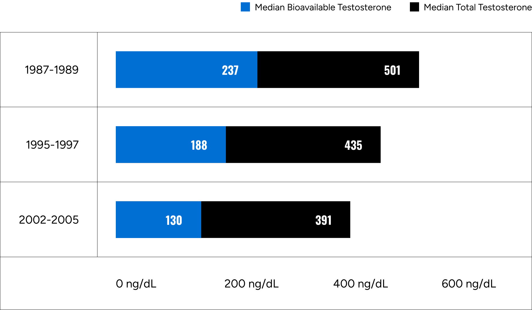 Testosterone, sperm count, and overall strength have been in decline for decades. Men today even feel less masculine than their fathers and grandfathers before them.