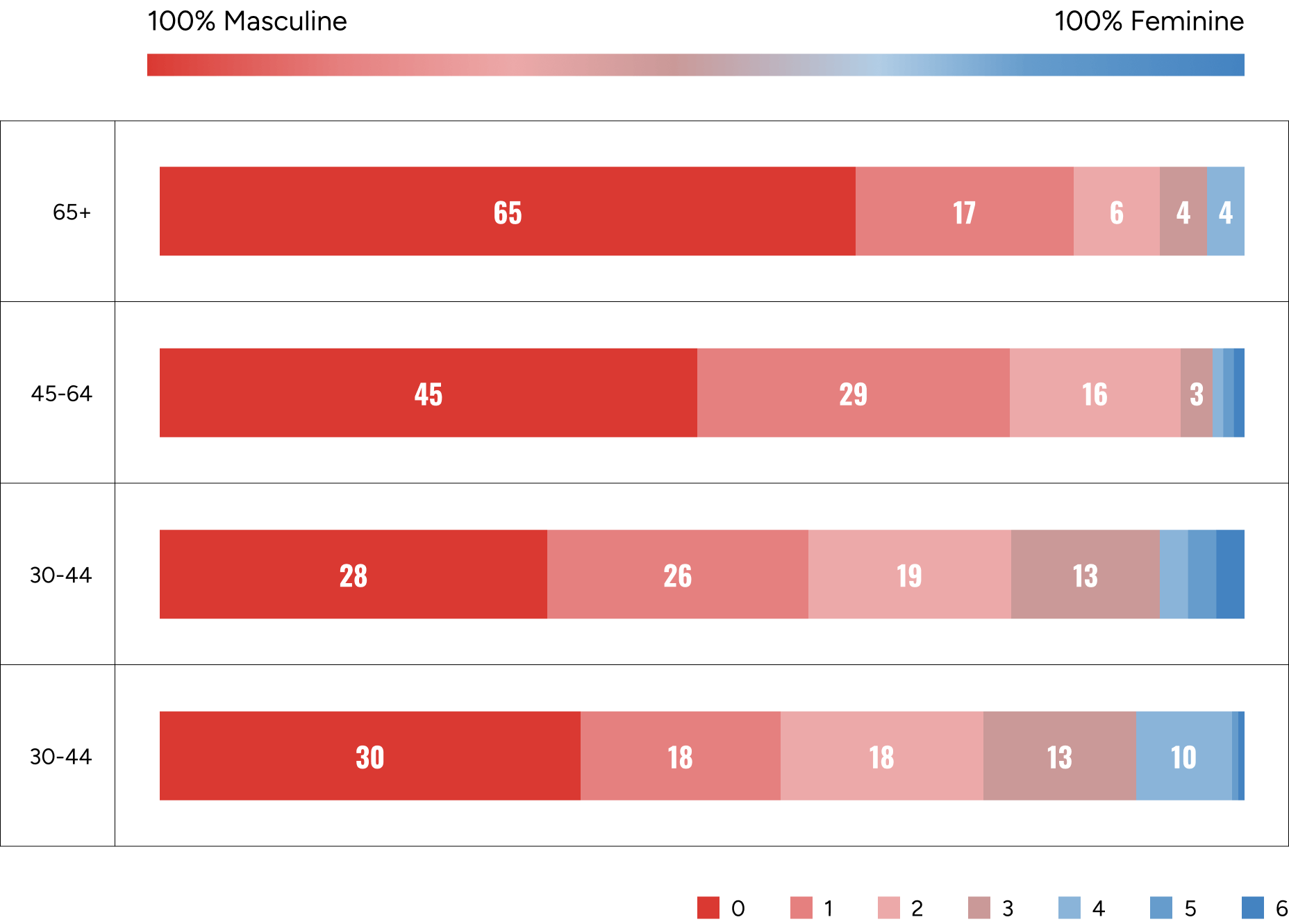 Men placed themselves on a scale of masculinity/femininity, 0 was 100% masculine and 6 was 100% feminine.