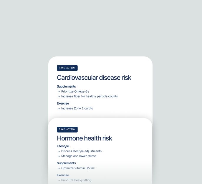 At this time, this is a self-directed lab offering — your results do not include a physician consultation. However, everything is designed to be interpretable on your own, with clear optimal ranges and context for each marker developed by board-certified clinicians and laboratory scientists, plus personalized guidance on recommended health actions. We encourage you to share your results with your primary care physician if you'd like to discuss specific findings further.