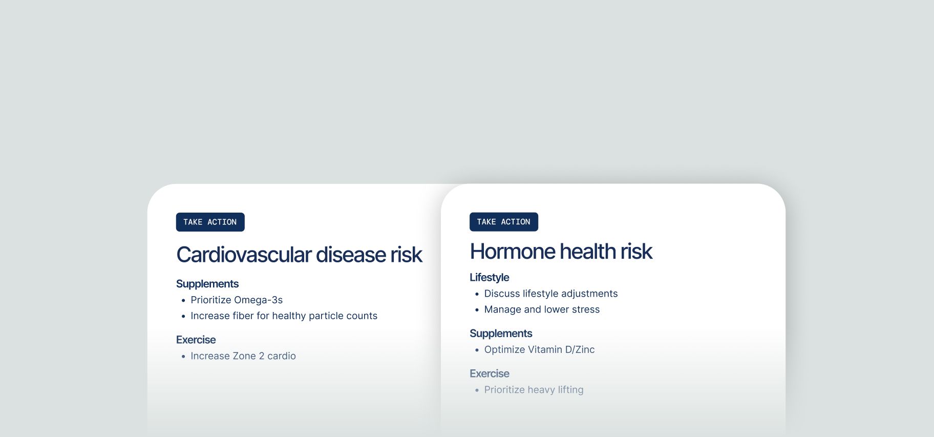 Clear next steps for diet, exercise, sleep, and stress — based on what your data actually shows.