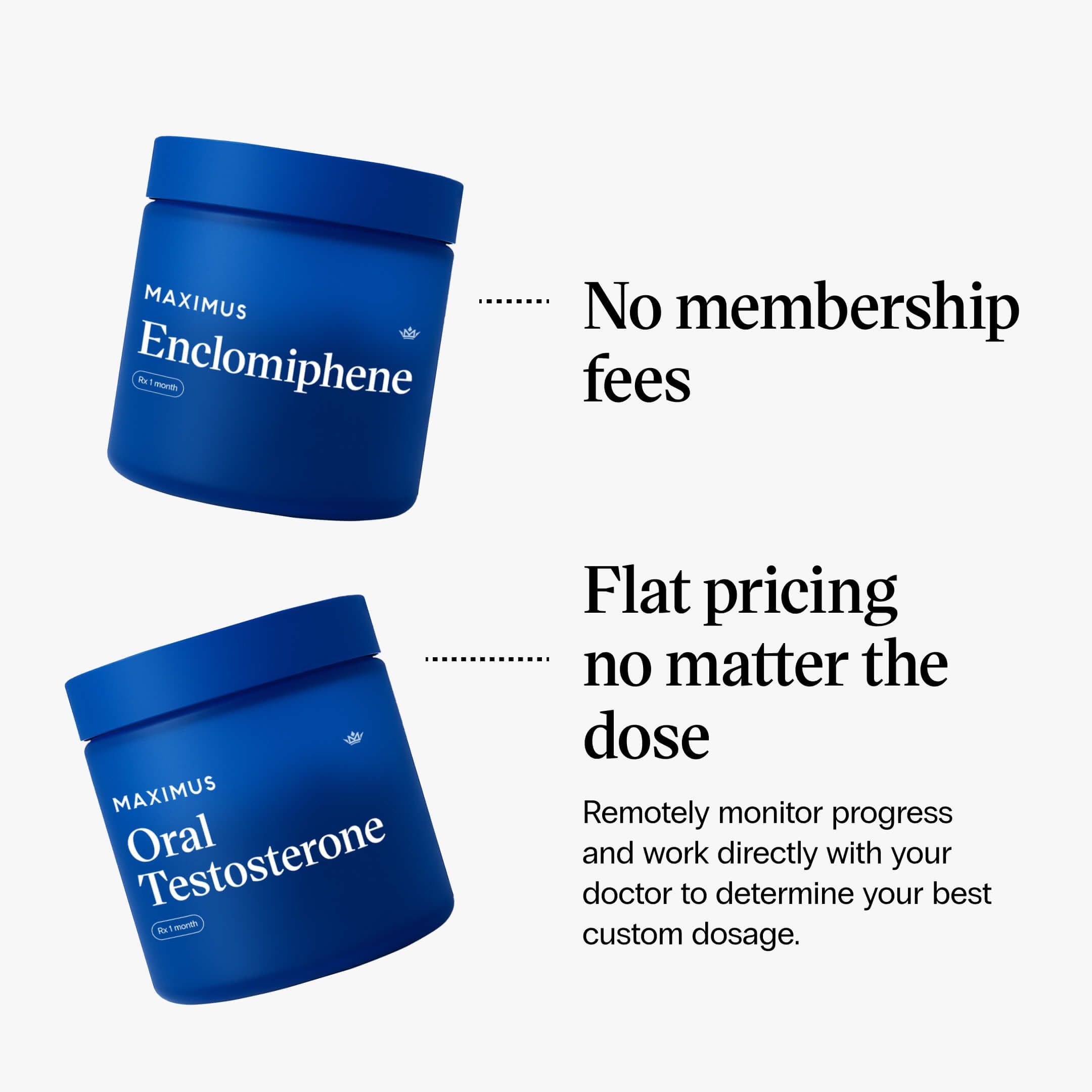 Maximus guarantees that all of our Testosterone Protocols will increase your testosterone by at least 10% in the first 90 days of treatment. Customers will track their levels with CLIA certified blood tests (both before starting the protocol to establish a baseline, as well as after taking the medication, as directed, for at least 30 days). If total testosterone has not been increased by 10%, a customer can email support@maximustribe.com to request a refund for all medication costs. Requests should be submitted within 90 days of beginning a protocol. Lab costs and doctor consultation/network fees are not eligible for refunds. Additional information can be found in the Maximus Health Online Terms of Use.