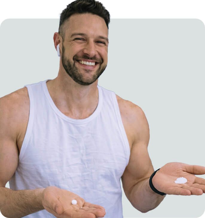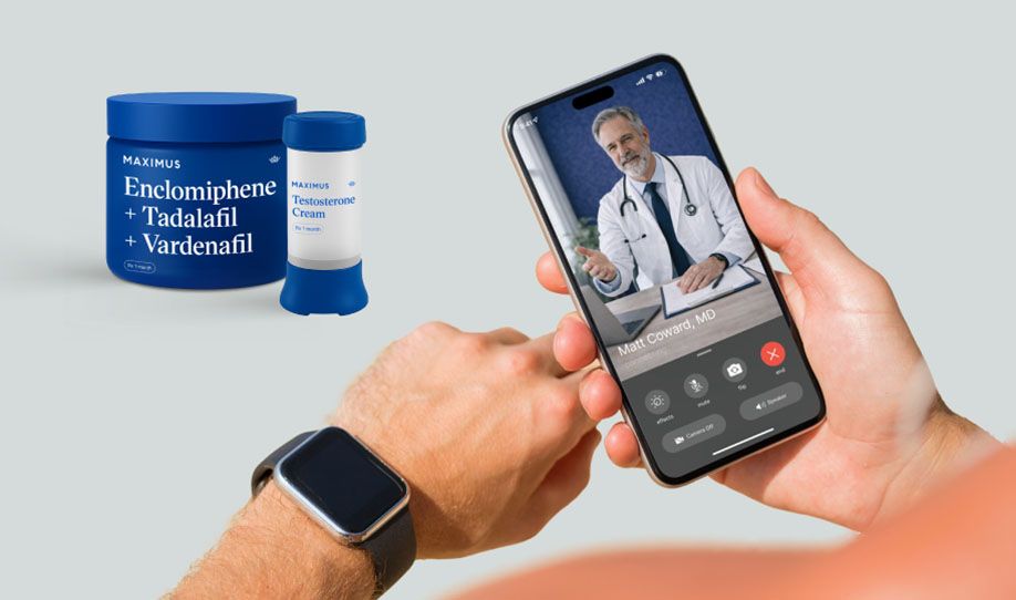 Enclomiphene, Tadalafil, and Vardenafil are taken as a daily pill. Testosterone cream is applied once daily to areas with thin skin—such as the inner arms, wrists, lateral abdomen, inner thighs, or scrotum. It's 1 pill and 1 application at the same time each day. Your Maximus clinician will confirm your exact dosing, timing, and application instructions.
